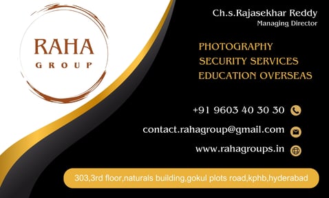 RAHA Group is a leading provider of expert services in Photography, Security, and Global Solutions. Our photography division delivers high-quality, creative imagery for both personal and professional needs, capturing moments that matter. We offer comprehensive security services, including advanced surveillance and cybersecurity, ensuring the protection of assets and data. Our overseas division specializes in global business solutions, including logistics, market entry, and consulting, helping clients expand and thrive internationally. With a commitment to excellence and tailored solutions, RAHA Group is your trusted partner for success.
